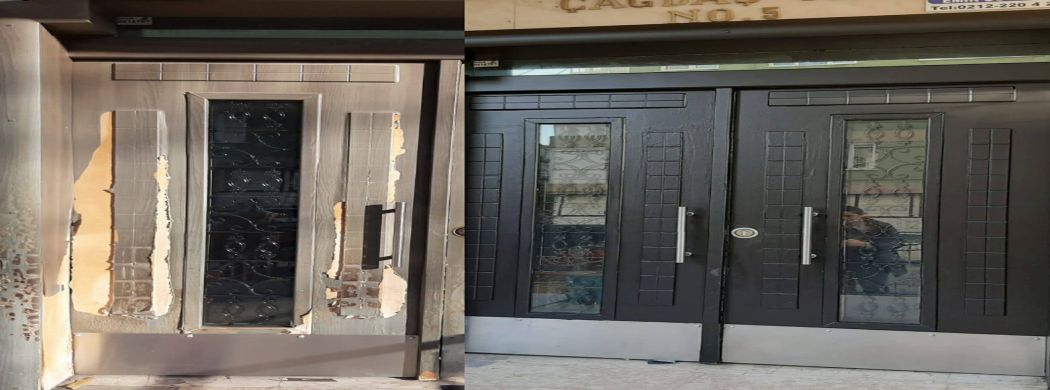 Bina kapısı görünüm yenileme güneş ışığı, yağmur, rüzgar gibi hava koşulları sonucu yıpranan, eskiyen kapı panelinin değiştirilerek yenilenmesi işlemidir. Bu tür durumlarda ustalarımız kapı panelini tüm hava koşullarına karşı 7 yıl görünüm garantili panel ile değiştirmektedir.